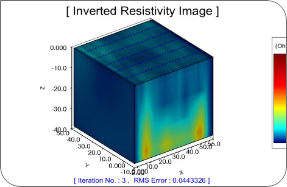 3D 전기비저항 역산 후 결과의 이미지는 3D Volume 이미지로 나타난다.