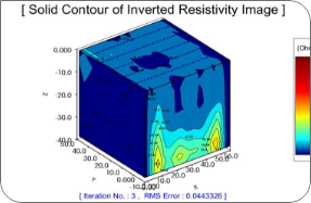 국내 최초 개발한 3D 대지비저항(전기비저항)역산 소프트웨어인 'Geo Scan 3D'를 이용하여 3D 측정을 통해 3차원 대지비저항(전기비저항) 영상을 구현하여
