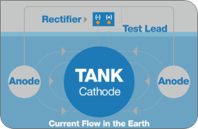 각종 보호하고자 하는 대상 구조물을 음극으로 하여 불용성양극 직류전류를 유입하여 금속을 음분극 하여 방식하는 방법이다.